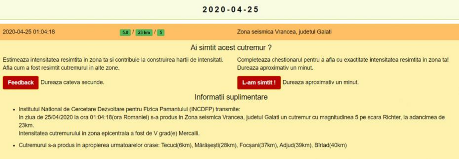 Землетрясение произошло вблизи следующих городов: Бырлад (25 км), Берешти (27 км), Текуч (29км), Тыргу-Бужор (30 км) Мэрэшешти (51 км)