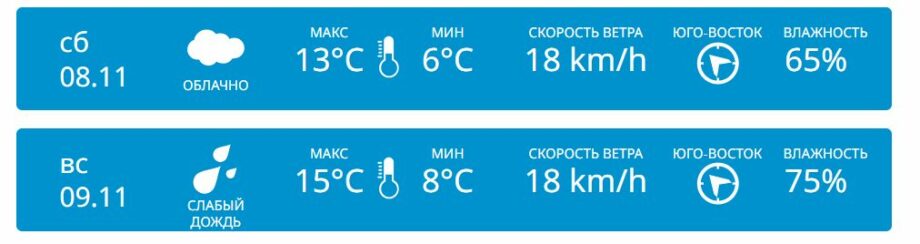 Небо преимущественно облачное. В субботу ожидается без осадков, а в ночь с воскресенья на понедельник днем на обширных территориях ожидается небольшой дождь. Местами образуется слабый туман. Ветер преимущественно юго-восточный, слабый до умеренного.