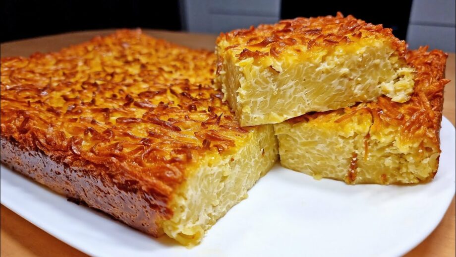Лапшу заливают смесью молока, яиц и сахара. Можно добавить изюм или цукаты. В идеале оно готовится в молдавской печи, а затем нарезается на брусочки.