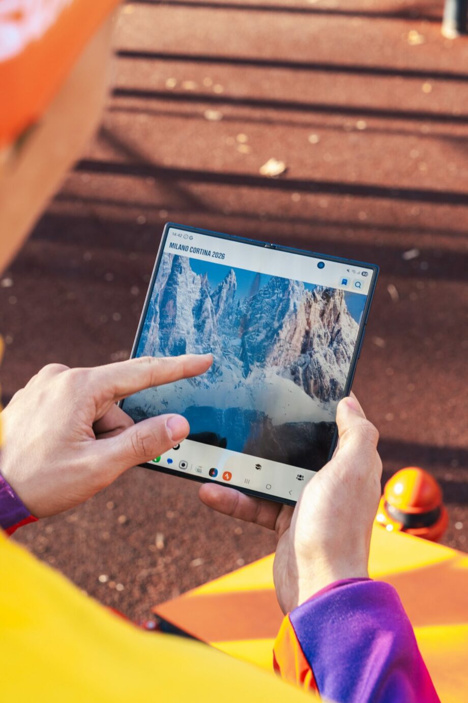 Для более комплексной подготовки Юлиан использует технологии, в частности телефон Galaxy Fold 7. Благодаря Flex-режиму он может снимать свои тренировки самостоятельно без штатива, а затем анализировать движения в замедленном режиме, чтобы проверить правильность исполнения.