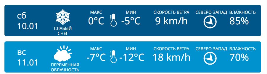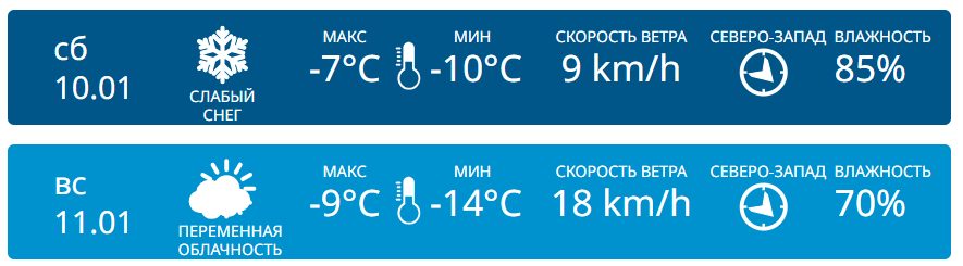 В южной части республики, например, в Кахуле, в воскресенье будет значительно холоднее, чем в субботу. В первый день выходных ожидается слабый снег при температуре + 0 °C днем и — 5 °C ночью. На следующий день резко похолодает, температуры опустятся до — 7 °C днем и — 12 °C ночью.